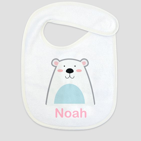 Babete personalizado com textura suave que absorve eficazmente os líquidos. Fecho em gancho.