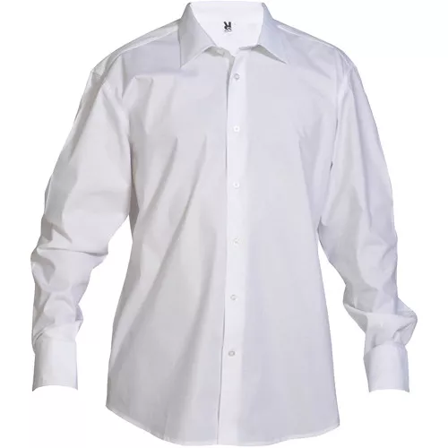 Material: 97% algodão, 3% elastano, popeline, 140 G . Camisa de tecido elástico com mangas compridas e gola rígida com um botão. Punhos com dois botões e barra arredondada.
