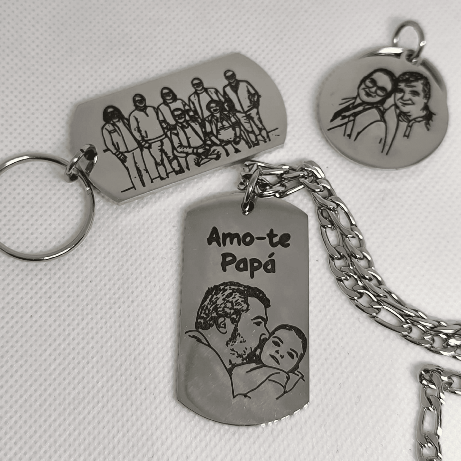 Dê um toque único às suas lembranças com uma peça personalizada! Escolha entre uma pulseira com design moderno, um porta-chaves prático ou um colar elegante – todos fabricados em metal de alta qualidade e gravados a laser com o nome, data ou mensagem que desejar.