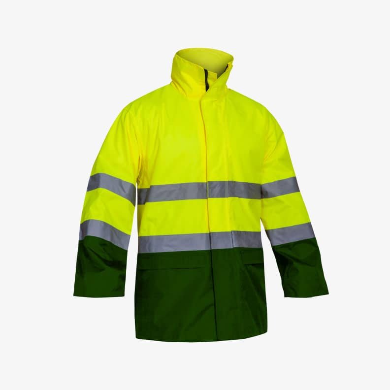Casaco de alta visibilidade confecionados em tecido com várias cores.